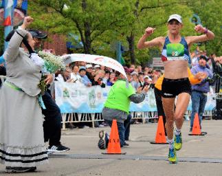 Half Marathon with 1:04:10, 9th overall and 1st among